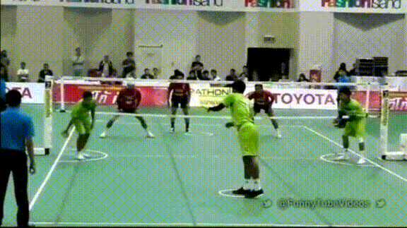 Footvolley was created by Octavio de Moraes in 1965 in Brazil.[2] Footvolley combines field rules that are based on those of beach volleyballwith ball-touch rules taken from association football. Essentially footvolley is beach volleyball except players are not allowed to use their hands and a football replaces the volleyball.[3]